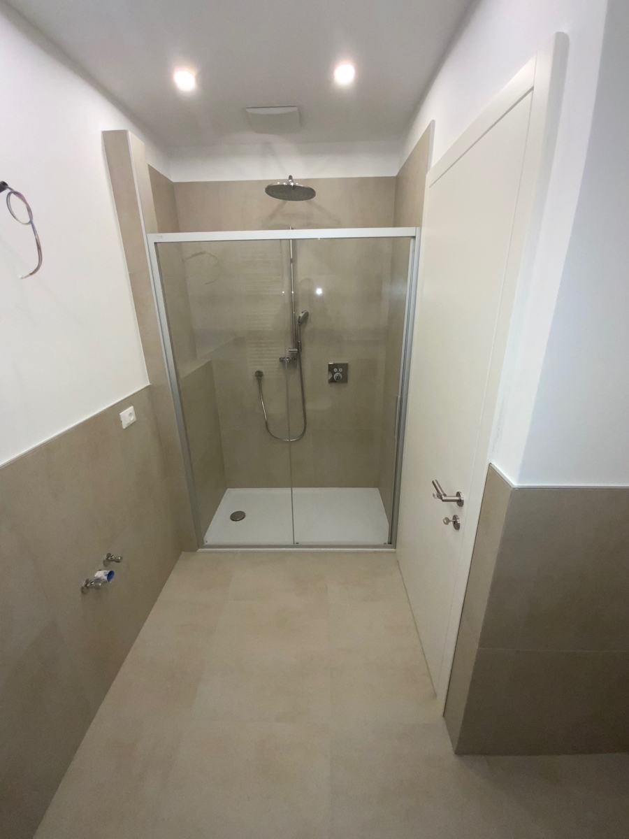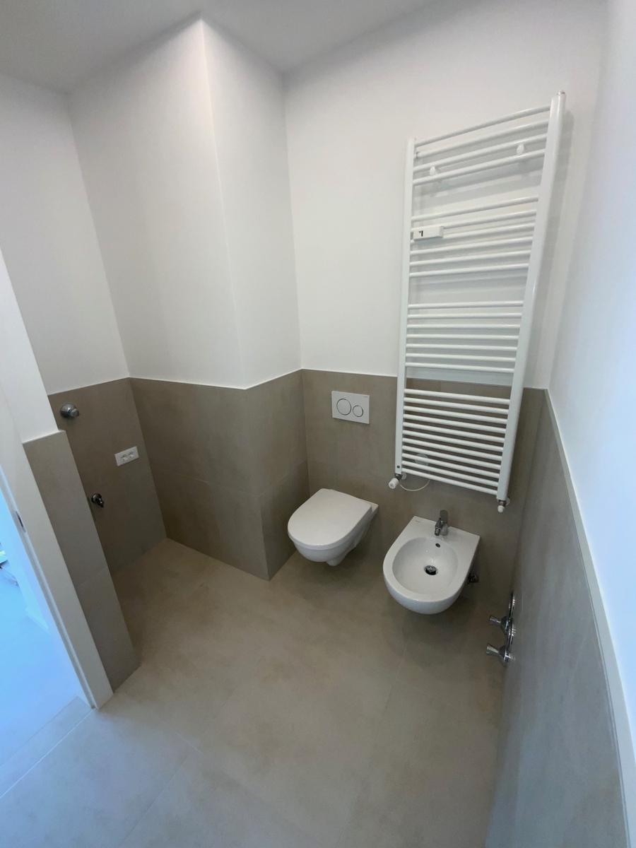Das Badezimmer ist mit einer bodentiefen Dusche, sowie einem Bidet und einem WC ausgestattet.