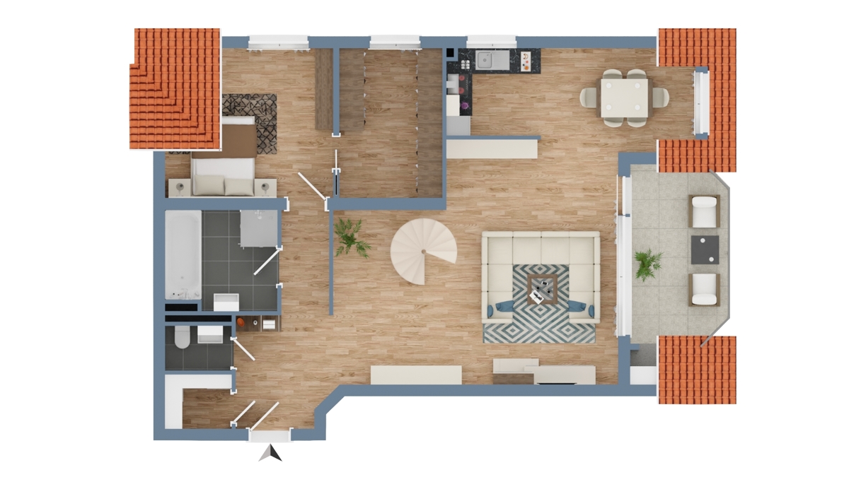 – Böden: hochwertige Granitböden, Fliesen, Parkett